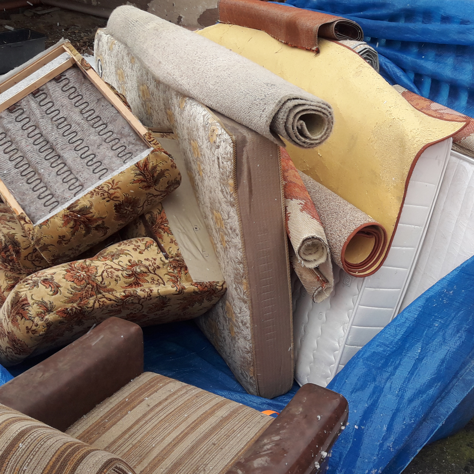 Zu entsorgende sperrige Einrichtungsgegenstände aus Entrümpelungsmaßnahmen oder